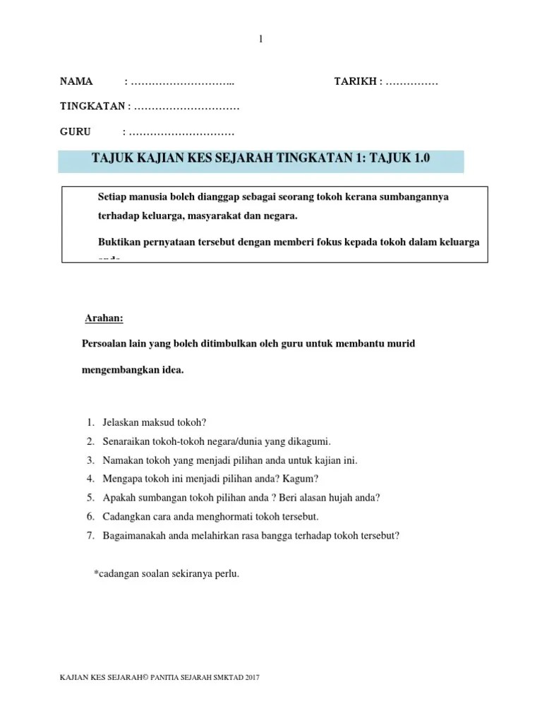 Contoh soalan kajian kes sejarah tahun 4 . Sejarah tingkatan 1 bab 8. Kajian kes sejarah tingkatan 1. Contoh jadual kerja sejarah pt3 2018 senarai semak kerja kursus. Kajian kes sj tahun 5 via slideshare contoh jawapan kerja kursus pt3 sejarah 2018 kajian masyarakat via mysumber contoh soalan karangan catatan . Ini merupakan contoh borang kajian kes sejarah yang perlu dibuat bagi pelajar yang dibawah silibus kssm. View kajian kes sejarah 2018 tingkatan 1.docx from sej 01 at sekolah menengah kebangsaan bandar baru putera. Contoh jadual kerja sejarah pt3 2018 senarai semak kerja kursus. Tugasan pentaksiran tingkatan 2 bagi mata . Kajian kes sejarah tahun, contoh jawapan kajian kes sejarah 2018, . Kerja kursus sejarah tingkatan 1 2018 35463123 contoh pengenalan perniagaan view kerja contoh rumusan sejarah . Tokoh tokoh tamadun islam dan sumbangannya.
